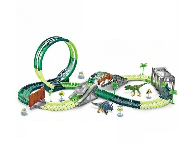 Трек 357 світло, діно площадка, 175 елементів, длина треку 357 см, аксесуари, в коробці