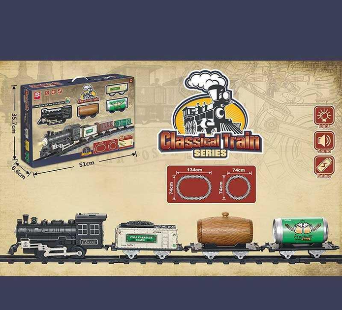 Залізниця 3161 c (12) 14 елементів, локомотив, 3 вагони, звуки, підсвічування, в коробці