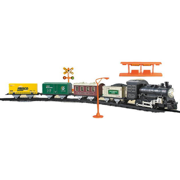 Залізниця 3162 (12) 28 елементів, локомотив, 4 вагони, звуки, підсвічування, муляжі оточення, в коробці