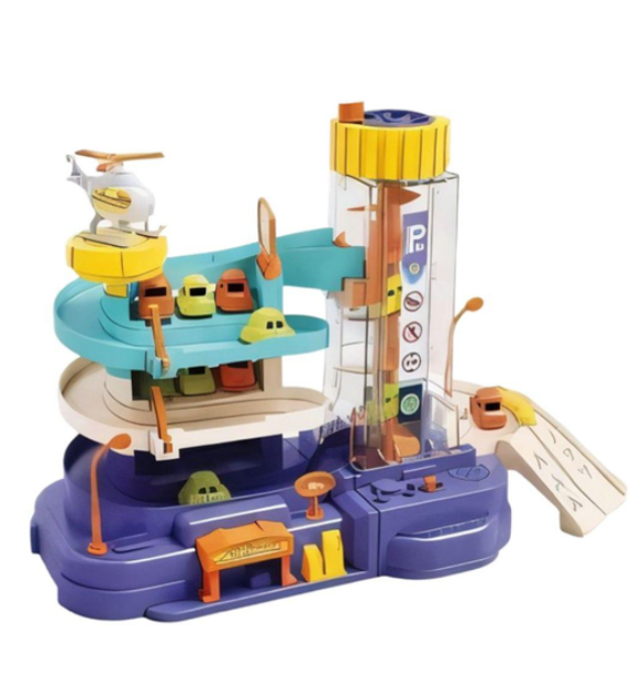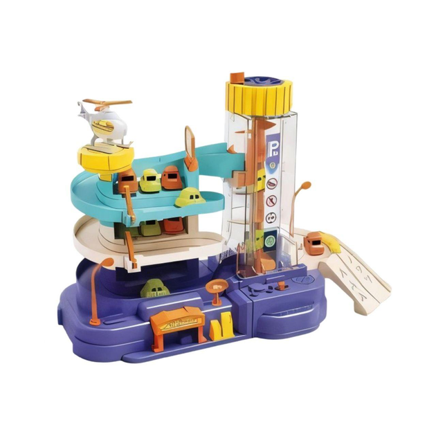 Трек 31-25 трирівневий з механічним підйомником, 4 мінімашинки, вертоліт та аксесуар, в коробці