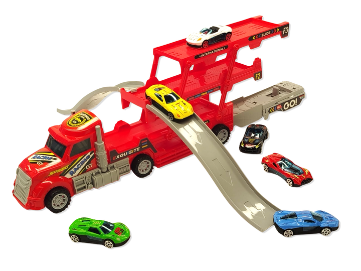 Трек з автоматичним підіймачем (2023-31) 5 рівнів, 4 машинка, 2 герої, підсвічування, мелодія
