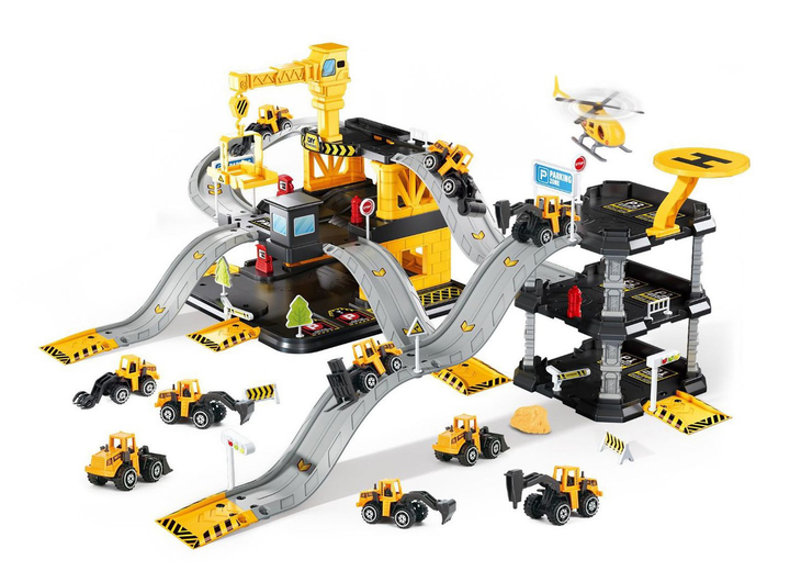 Трек паркінг для машинок 3 рівні 6 машинок вертоліт Будівельний майданчик Жовтий