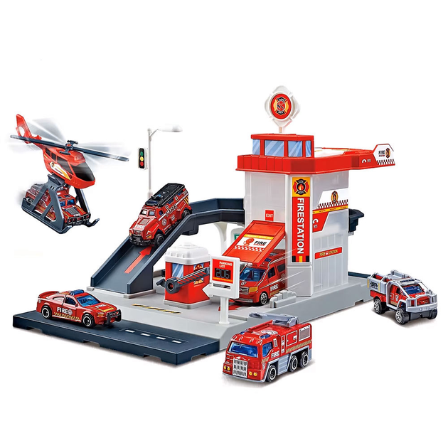Гараж паркінг для машинок Пожежна станція 2 поверхи 22 елементи