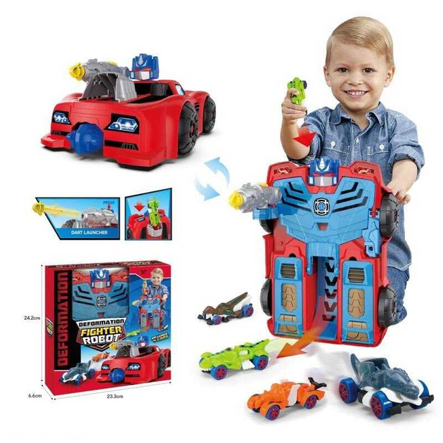 Гараж 17822 із великим трансформованим вантажівкою, що стріляє снарядами, та комплектом із 4 машинок
