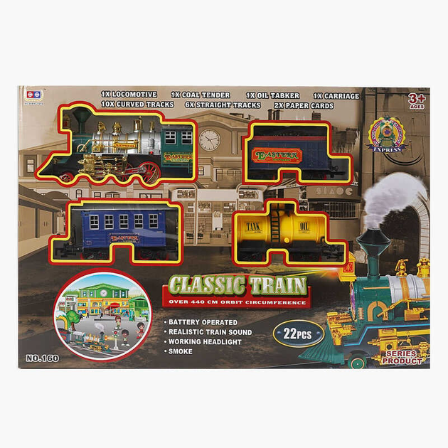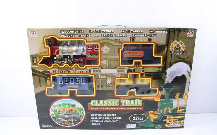 Залізниця 160 22 елементи, підсвічування, звук, парогенератор, довжина рейок 440см, 3 вагони