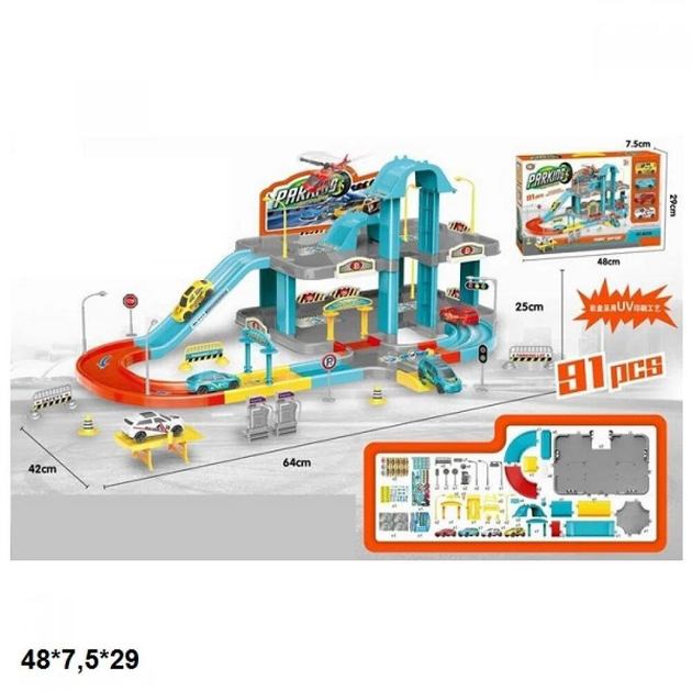 Паркінг 2-х рівневий з 4 машинками в комплекті.