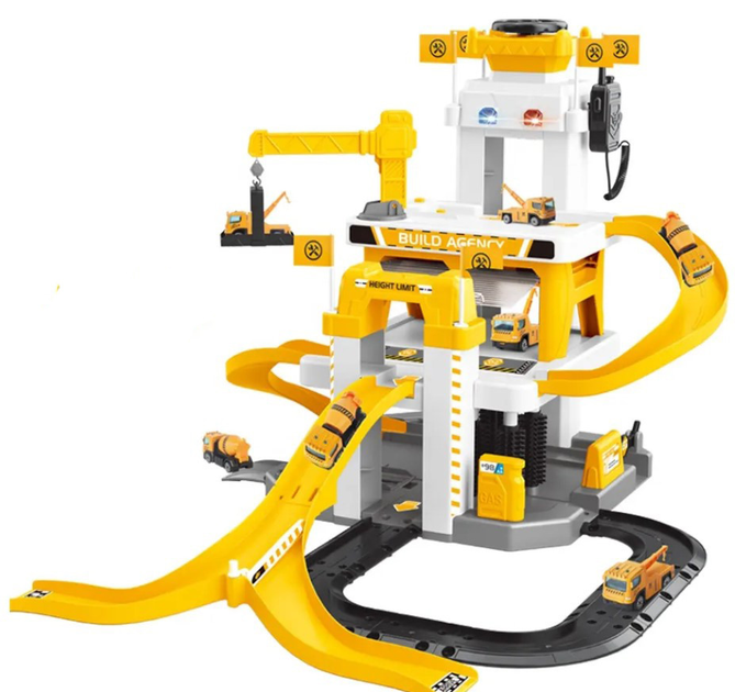 Трек паркінга для машинок на батарейках із мікрофоном Будівельний майданчик Жовтий