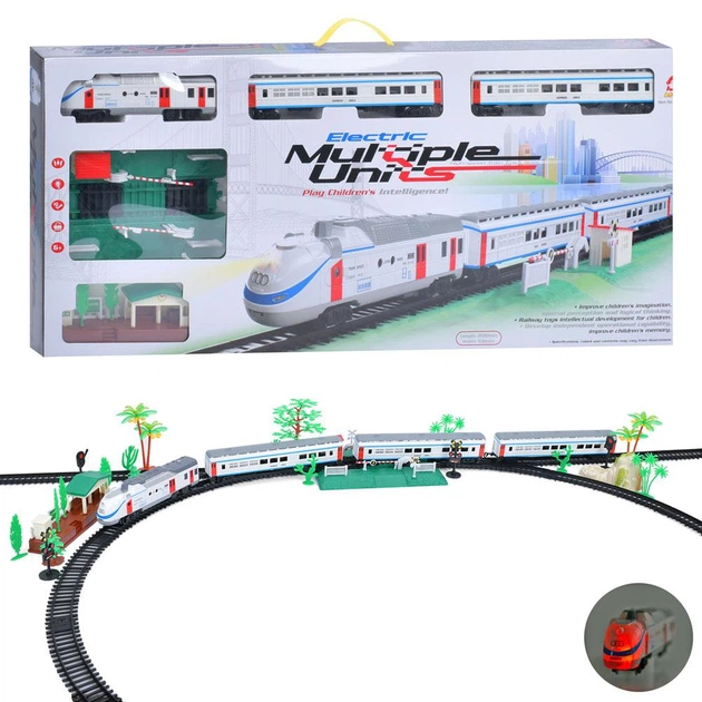 Дитяча іграшкова Залізниця "Multiple Units", локомотив, 3 вагони, шлагбаум, вокзал, музика, світло, арт. 22840