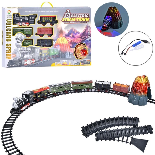 Дитяча іграшкова Залізниця на акумуляторі, локомотив, вагони, USB, музика, світло, арт. 22912