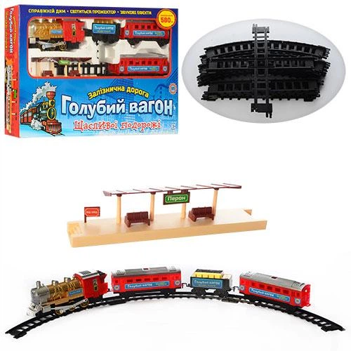 Дитяча іграшкова Залізниця "Блакитний вагон", дим, музика, світлові ефекти, арт. 7014/0612
