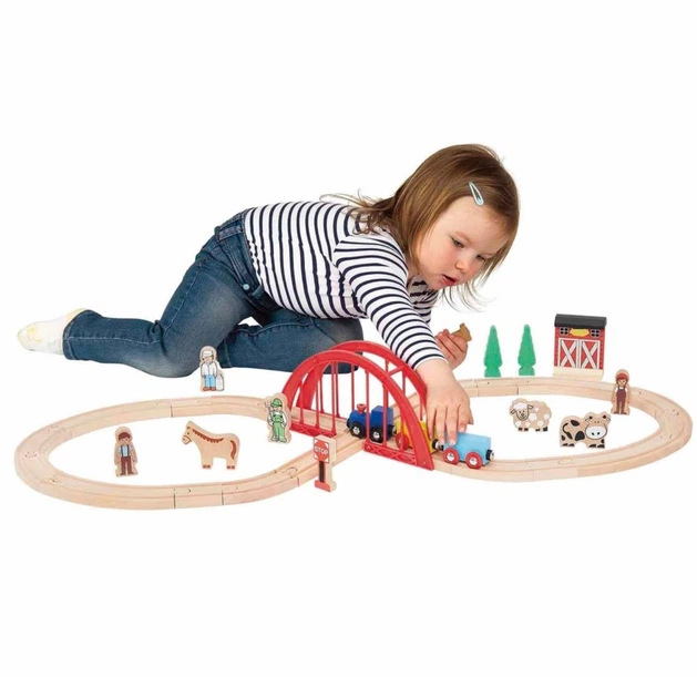 Дитяча дерев'яна залізниця (Ферма) PLAYTIVE 56 елементів