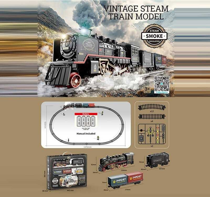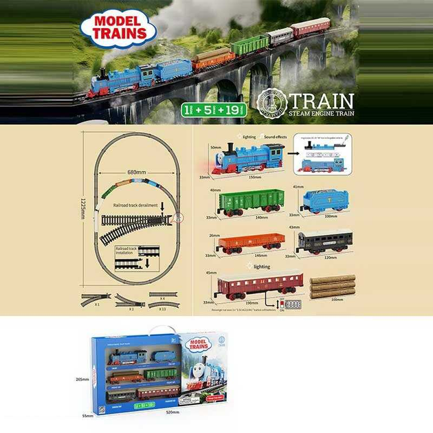 Залізниця hs 8019 a (16) локомотив, 2 вагони, звуки, підсвічування, парогенератор, в коробці
