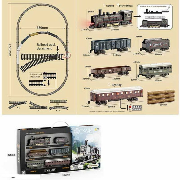 Залізниця HS 8018 A звук, підсвічування, ретро локомотив, 5 вагонів, у коробці