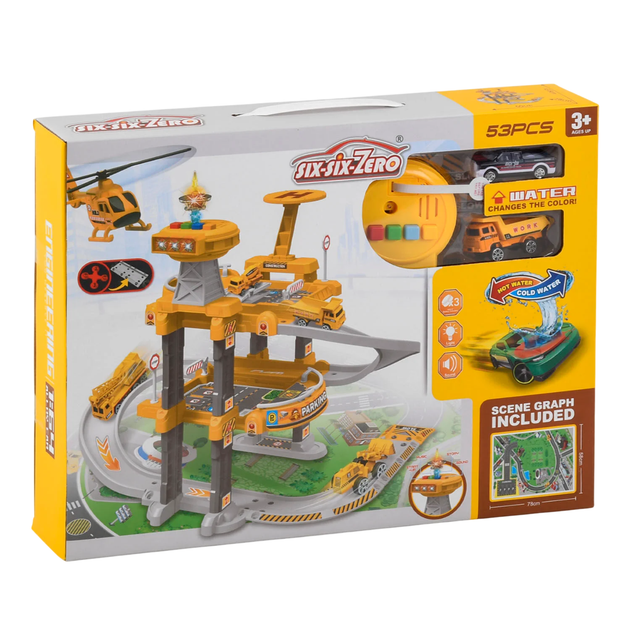 Автомобільний гараж Six-Six-Zero, 3 поверхи, 2 машинки, світло, звук. Yellow (104324)