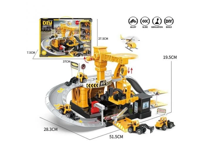 Парковка з інерційним механізмом (SJ 692 A-1) 3 машинки, підйомний кран, 10 мелодій, звуки роботи, рик, підсвічування