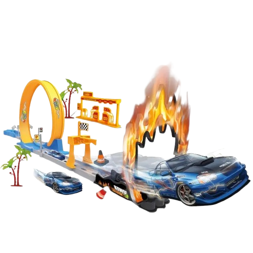 Трек з вогняним кільцем і петлею 3 машинки дитяча траса