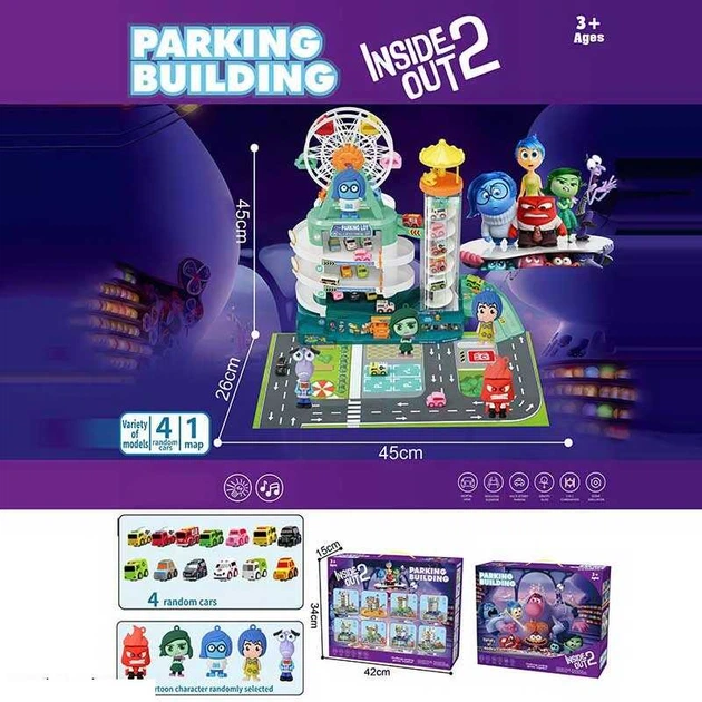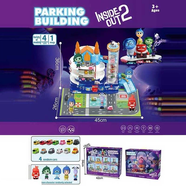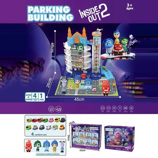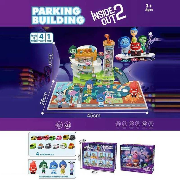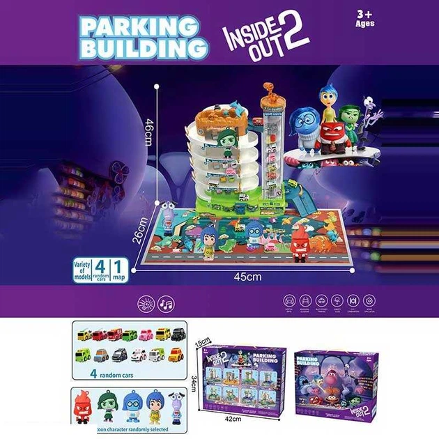 Трек 2023-34 (12) 3 рівні, 4 машинка, 2 герої, підсвічування, мелодія, автоматичний підіймач, в коробці