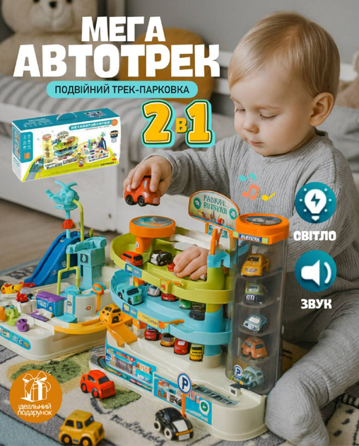 Автотрек дитячий з машинками великий паркінг швидкий спуск космічна станція трек для хлопчика кермо автотренажер