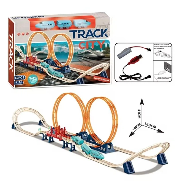 Дитяча іграшкова Залізниця 4146 B (18), дитячий набір залізниця, 2 локомотиви, вагон, мертва петля, мостик, акумулятор, USB-