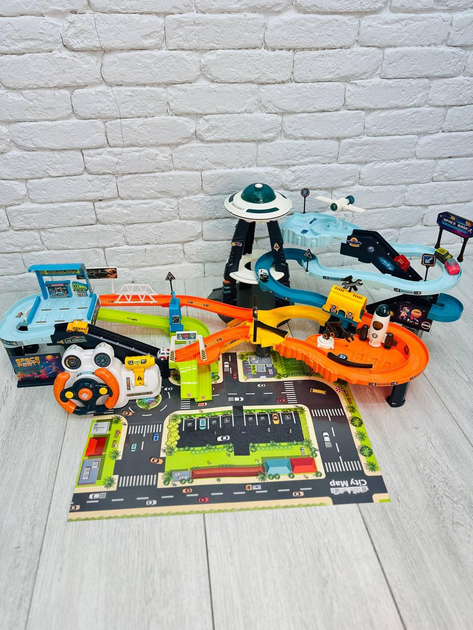 Автотрек дитячий з машинками великий паркінг швидкий спуск космічна станція трек для хлопчика кермо автотренажер