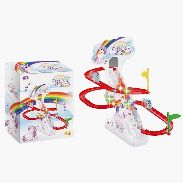 Трек 0912-7 "Єдинороги", підіймач на батарейках, музика, підсвітка, 3 фігурки, автоматичний підіймач, в коробці