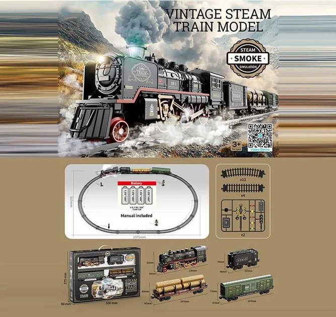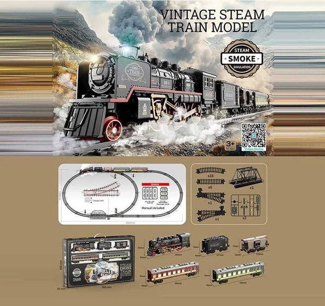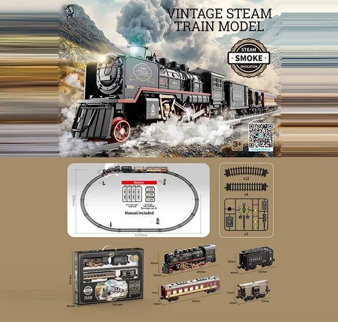 Залізниця HS 8022 A локомотив, 3 вагони, звуки, підсвічування, парогенератор