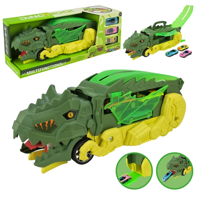 Автовоз динозавр-трансформер 3 в 1 з треком, трампліном і 8 машинками для дітей