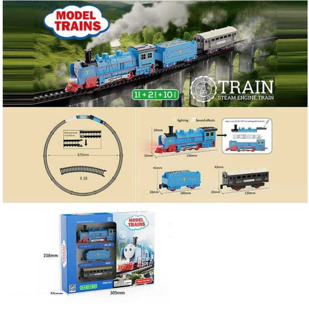 Залізниця HS 8016 B 13 елементів, локомотив, 2 вагони, звуки, підсвічування