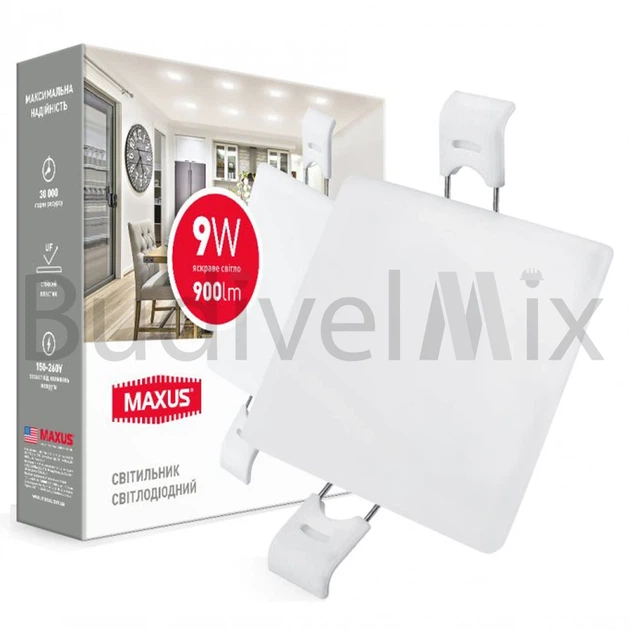 Світильник світлодіодний квадратний вбудований Maxus 9Вт 4100°К 1-MSP-0941-S білий
