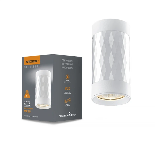 Світильник VIDEX під лампу GU10 SPF03A накладний білий + срібляста призма