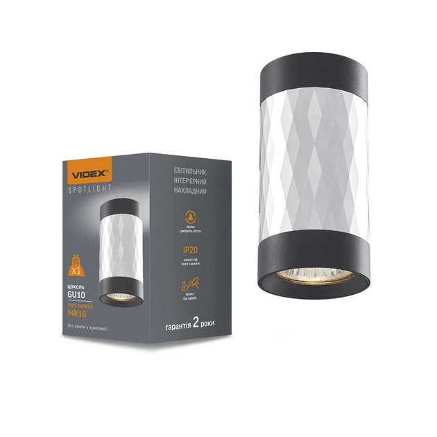 Світильник VIDEX під лампу GU10 SPF03A накладний чорний + срібляста призма