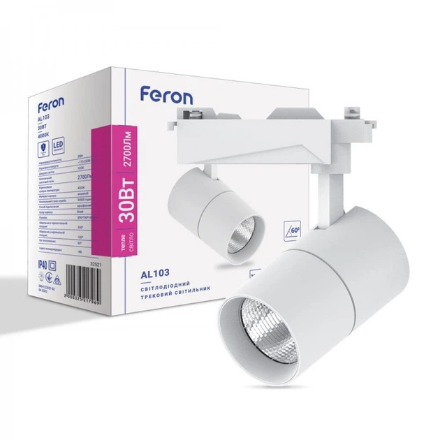 Світлодіодний трековий світильник Feron AL103 30Вт 4000K білий кут розсіювання 60