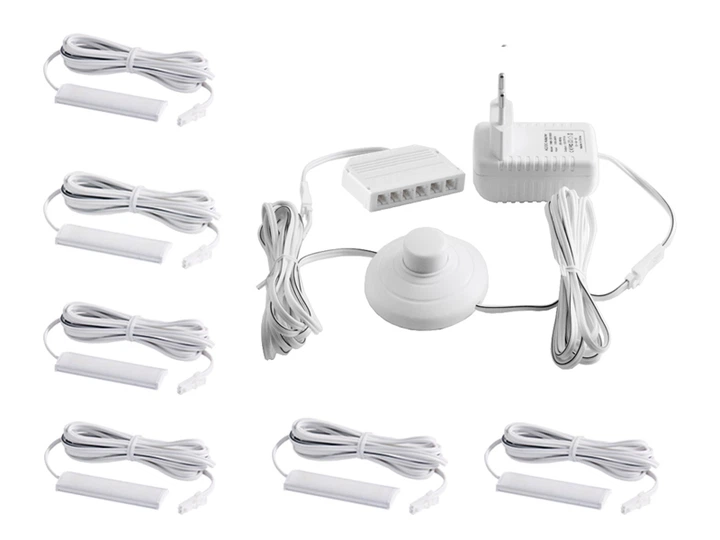Комплект світильників світлодіодних з ножним вимикачем накладних для підсвітки меблевих полиць 6шт 220V біле світло білий пр