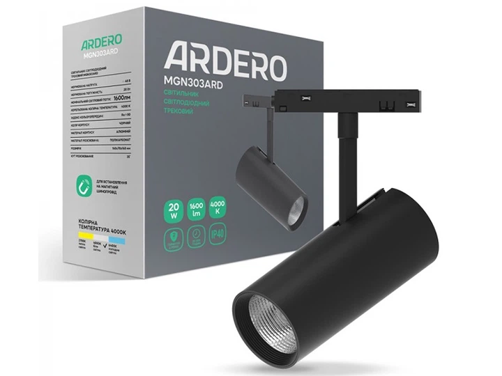 Світлодіодний магнітний трековий світильник 20Вт 4000K 35° чорний MGN303ARD Ardero