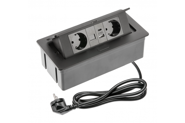 Меблева розетка GTV MULTISOFT, 2хSHUKO, USB A+C, RJ45, кабель 1.5 м, чорний - AE-PBSUR2GS-20