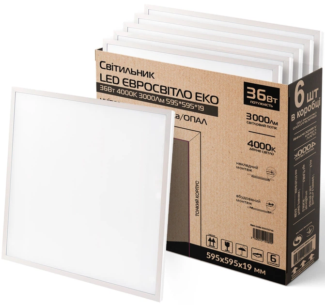 Набір Світильник LED Євросвітло ЕКО 36 Вт 4000К універсальний/опал 6 шт (2100013555387)