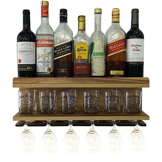 Настінна винна полиця з дерева Тайкі сієна (ПНК-014005)