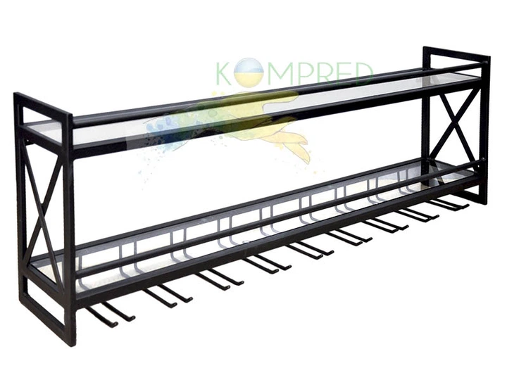 Полиця для вина та бокалів 1100х200х400мм полички затемнене скло, колір графіт Kompred OL274/3