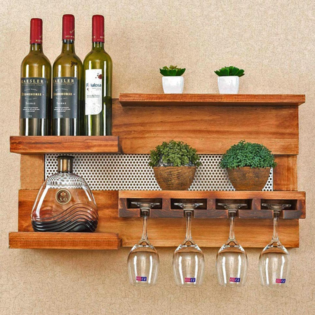 Настінна винна полиця з дерева Тояма сієна (ПНК-001205)