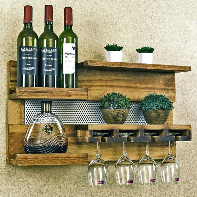 Настінна винна полиця з дерева Тояма макоре (ПНК-001226)