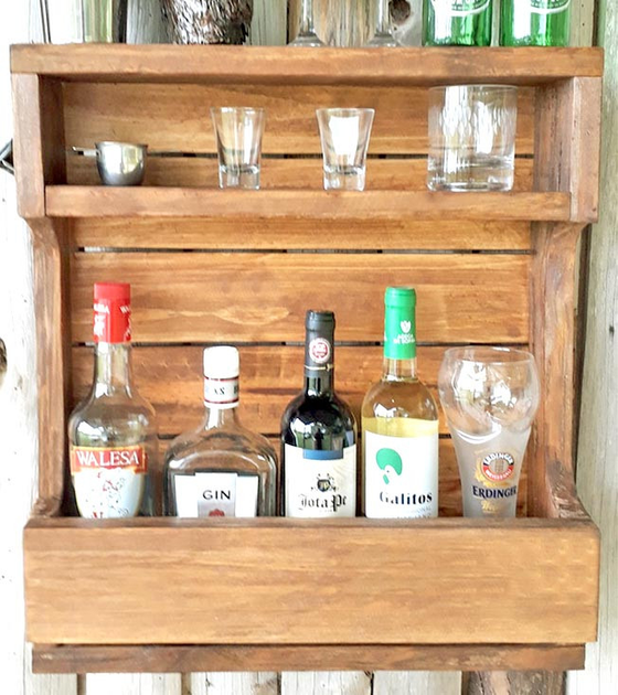 Настінна винна полиця з дерева Осарі сепія (ПНК-024908)
