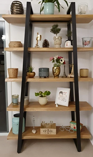 Дерев’яна полиця у формі драбини з металевим каркасом 0040511