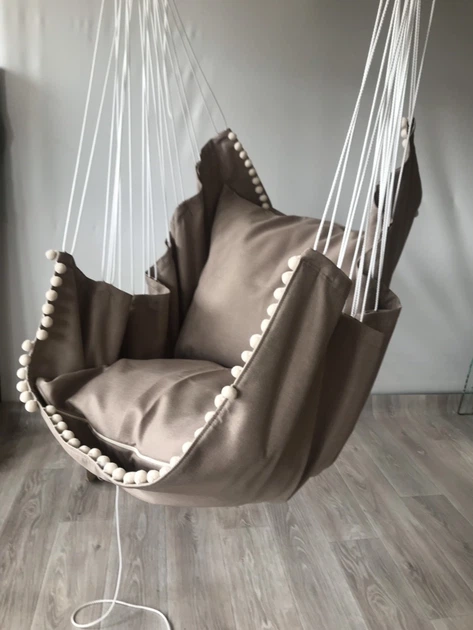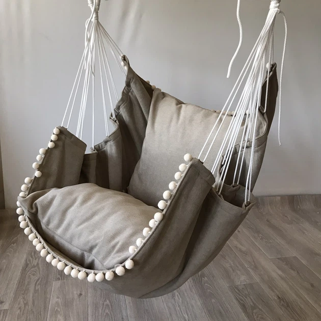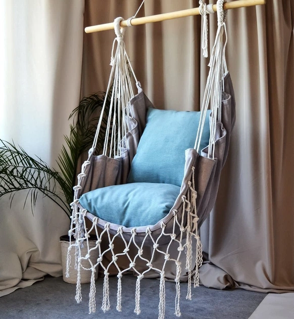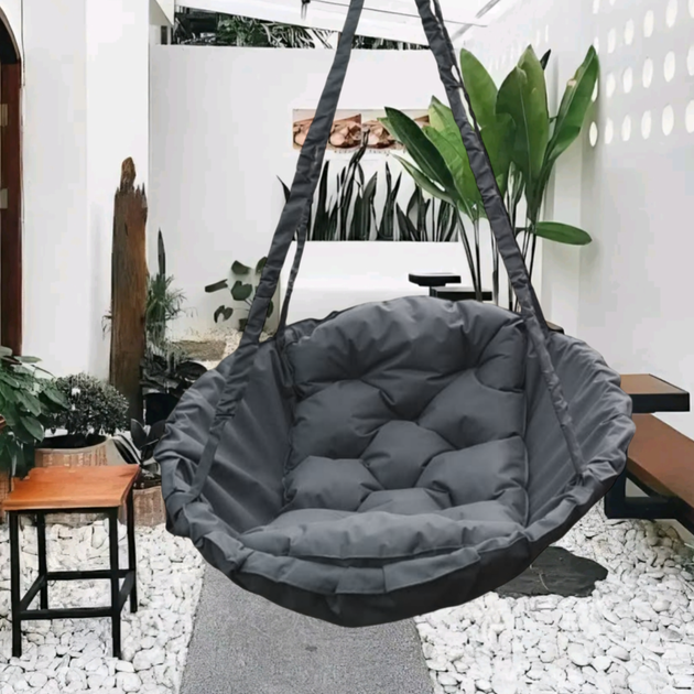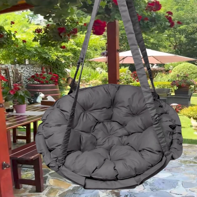 Крісло темносіре гойдалка підвісна із круглою подушкою гамак 1 м на 250 кг навантаження садове для дому для віранди