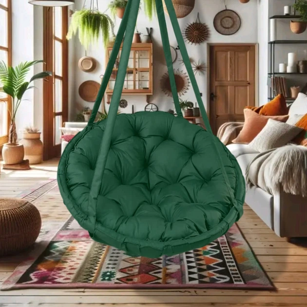 Крісло темнозелене гойдалка підвісна із круглою подушкою гамак 1 м на 250 кг навантаження садове для дому для віранди