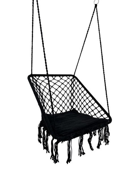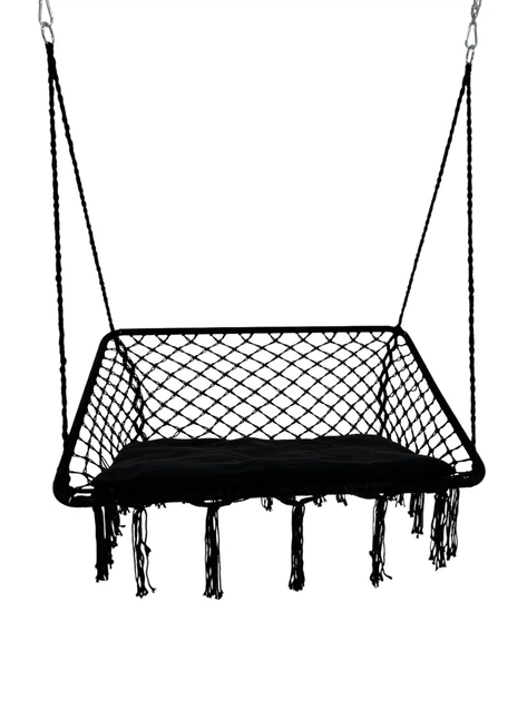 Крісло-гойдалка підвісна Плетена гойдалка квадратна WCG + м’яка подушка Чорна