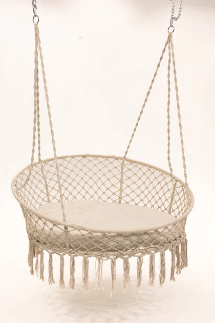 Підвісне крісло-гойдалка 140 см Велика плетена кругла гойдалка WCG + м'яка подушка Білий