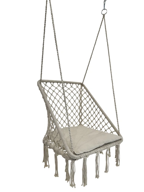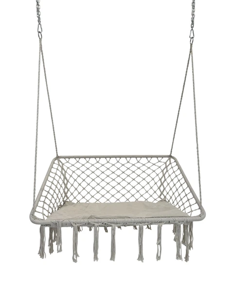 Крісло-гойдалка підвісна Плетена гойдалка квадратна WCG + м’яка подушка Біла