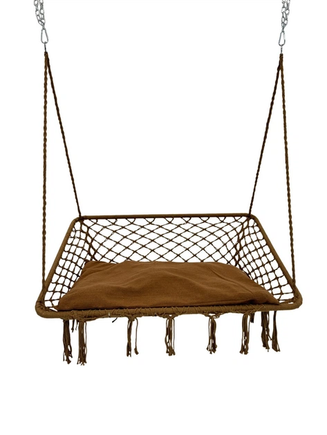 Крісло-гойдалка підвісна Плетена гойдалка квадратна WCG + м’яка подушка Коричнева