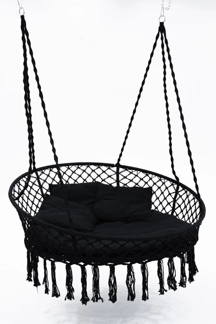 Крісло-гойдалка підвісна 140 см Велика плетена гойдалка кругла WCG + м’яка подушка Чорна