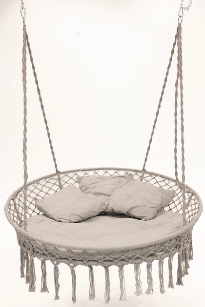 Підвісне крісло-гойдалка 140 см Велика плетена кругла гойдалка WCG + м'яка подушка Сірий